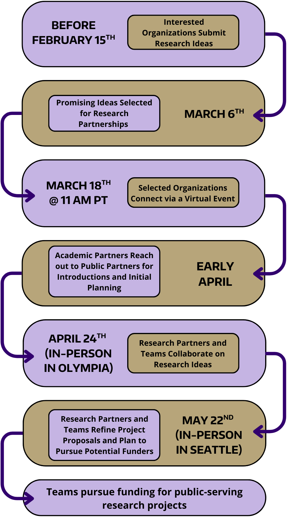- Send at least 2 staff who attended the first live event to an in-person event on the Seattle campus of the University of Washington on Friday, May 22, 2026 from 9am-4pm, to further develop a competitive research proposal for submission to a funder